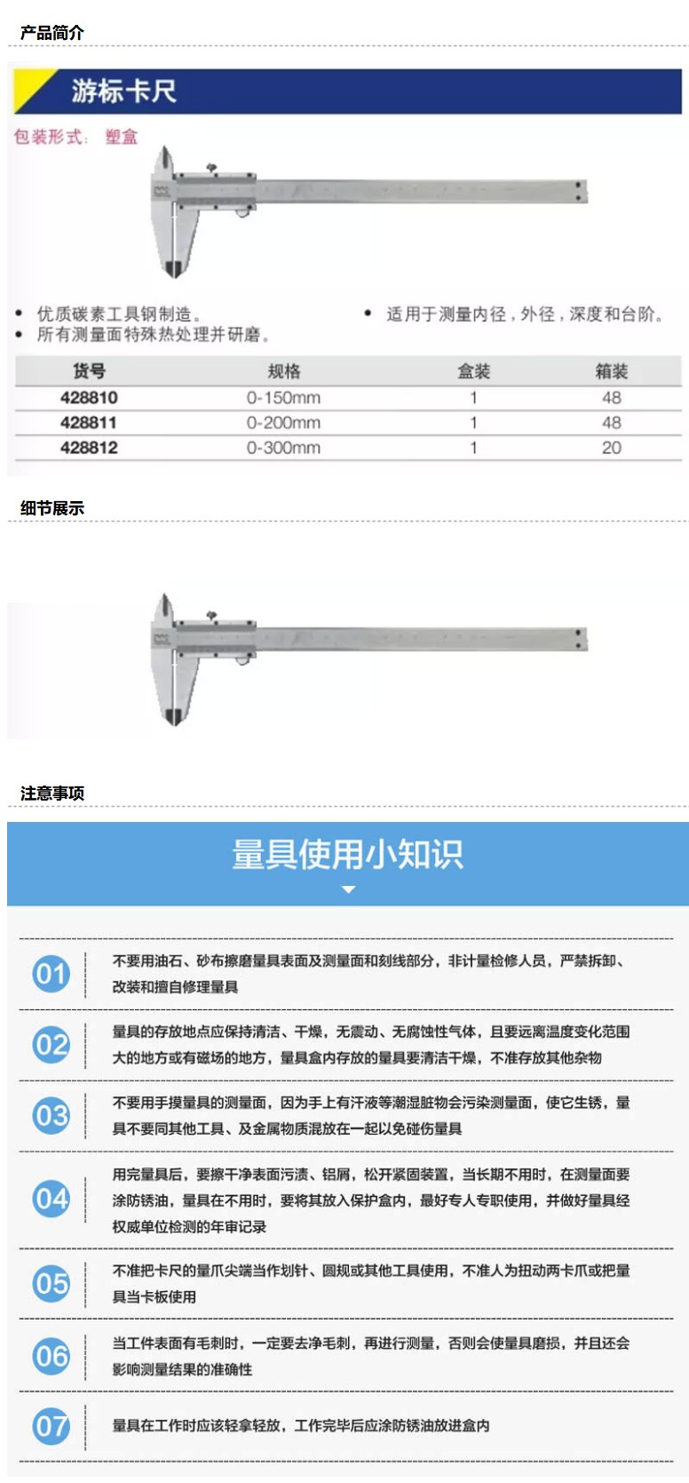 商品名称:长城精工Greatwall 游标卡尺,0-300mm,428812