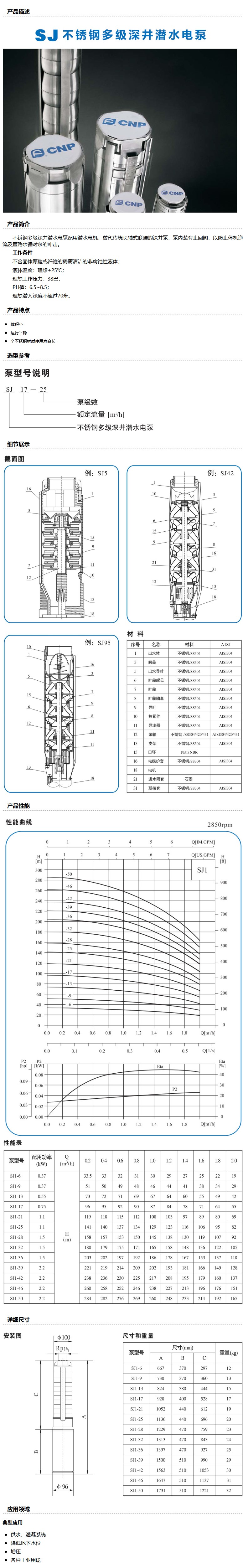 商品名称:南方泵业/CNP SJ1-28SWSP SJ系列不锈钢304多级深井泵,配国产电机,4寸支架