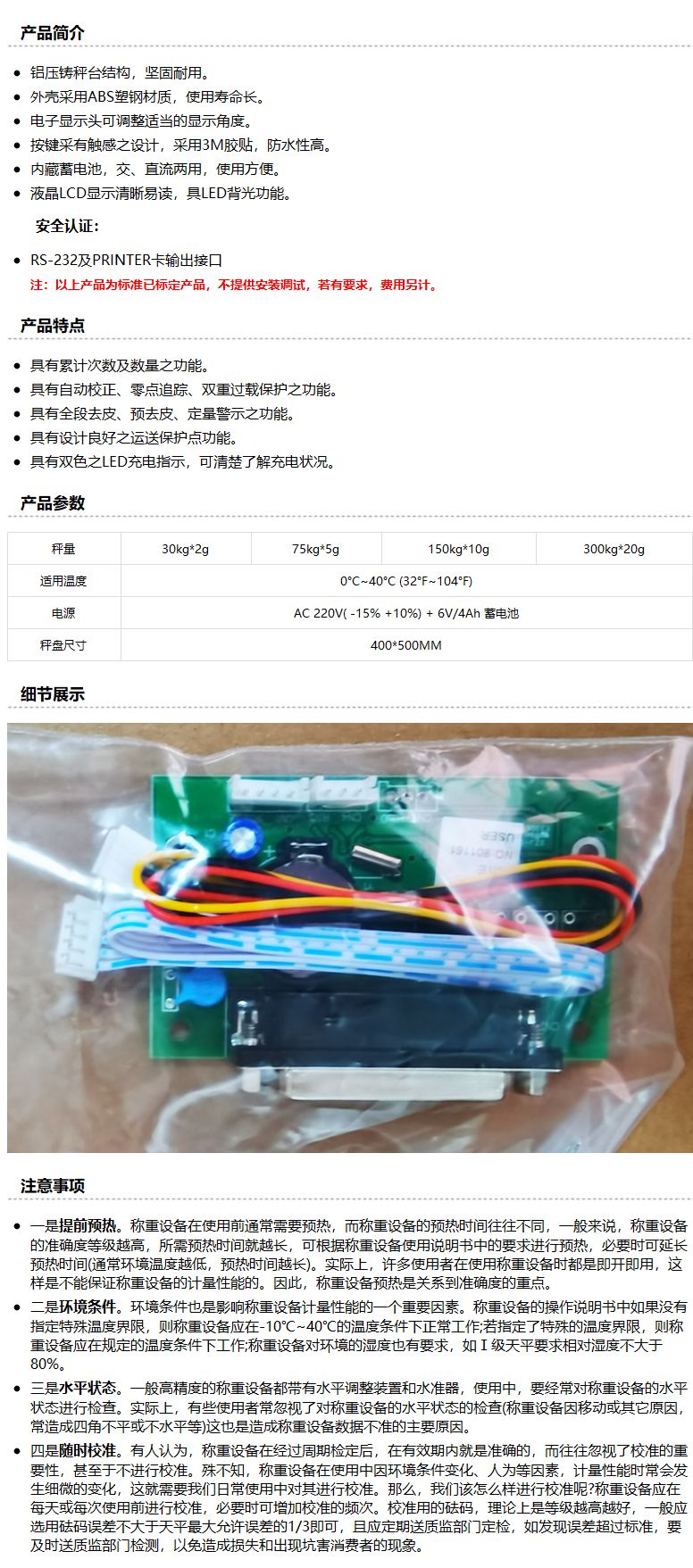 商品名称:英展 TCS-C计数台秤,300kg精度:20g(型号更新,TCS-C原AWH-TC),加rs232串口