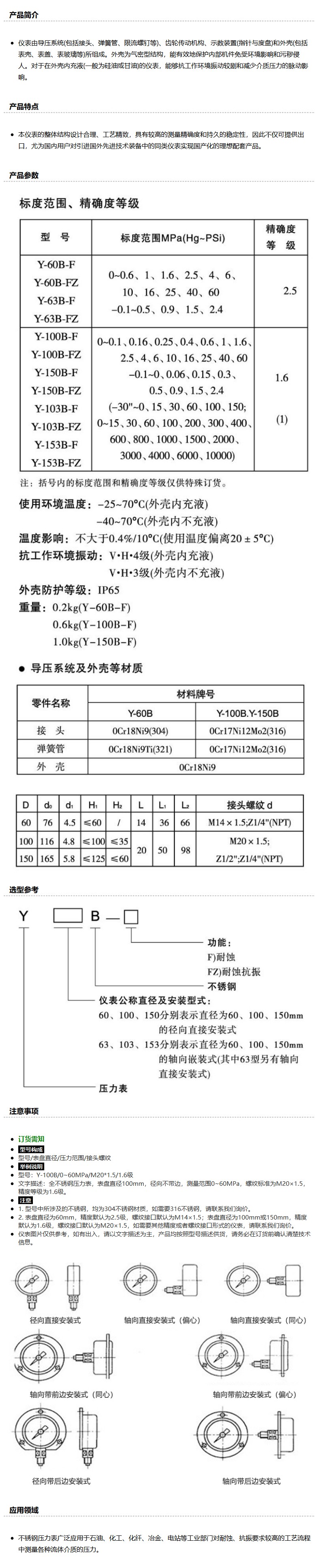 商品名称:上自仪 不锈钢压力表,Y-152BF/0-0.6MPa/G1/2/1.6级/全316/径向带边