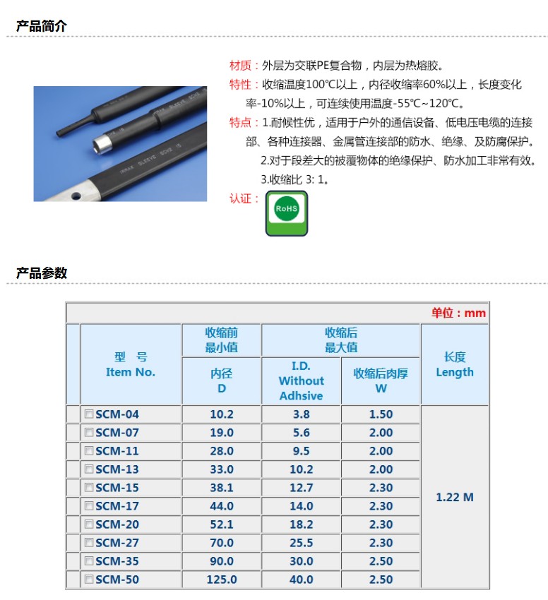 商品名称:凯士士KSS 含胶型热缩管,SCM-13 33mm*1.22m