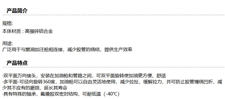 商品名称:FLUIDWORKS GF241TPS 801 万向接头