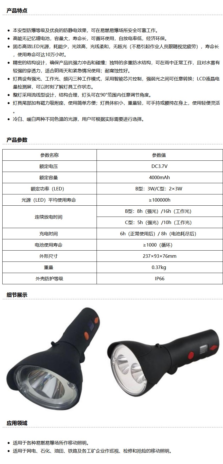 商品名称:景天照明 多功能防爆磁力强光工作灯,JT-JW7400B,3W,单位:个