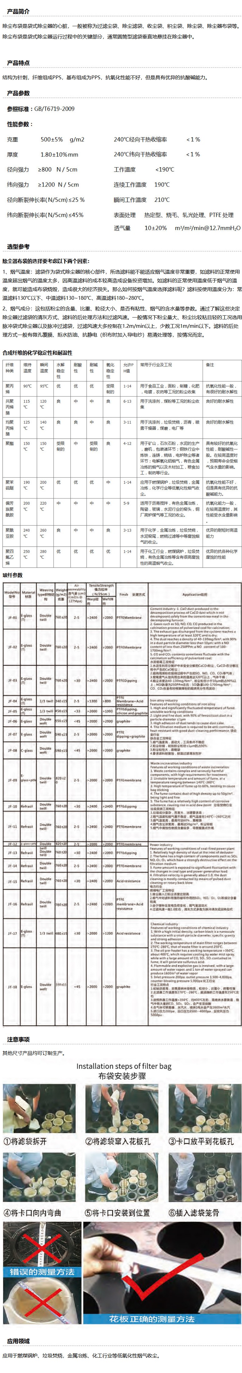 商品名称:捷丰 除尘过滤袋(pps浸渍针刺毡),JF-pps-403,500g/m2,适用花板口径×滤袋长度φ141mm×8m