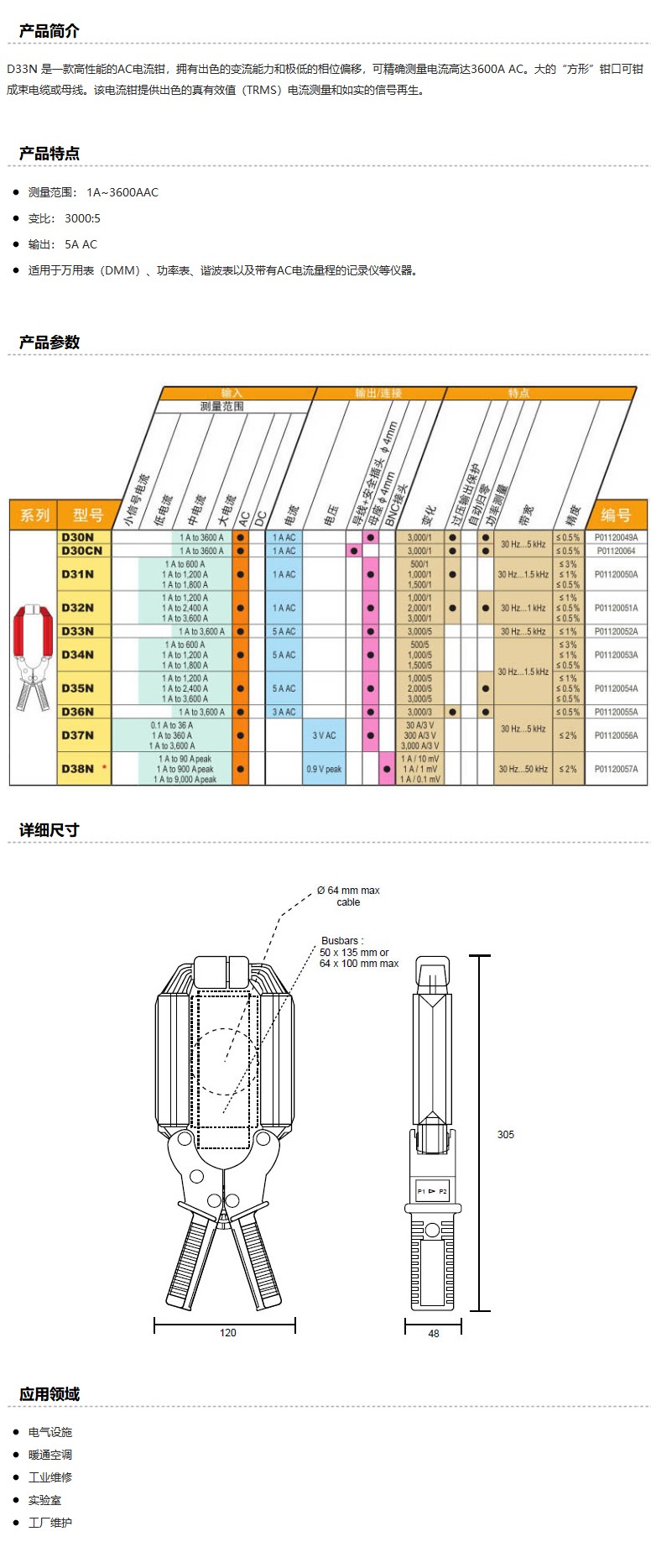 商品名称:CHAUVIN ARNOUX/CA 电流钳,1A-3600A,单交流,钳口大小64*150mm,母座,D33N