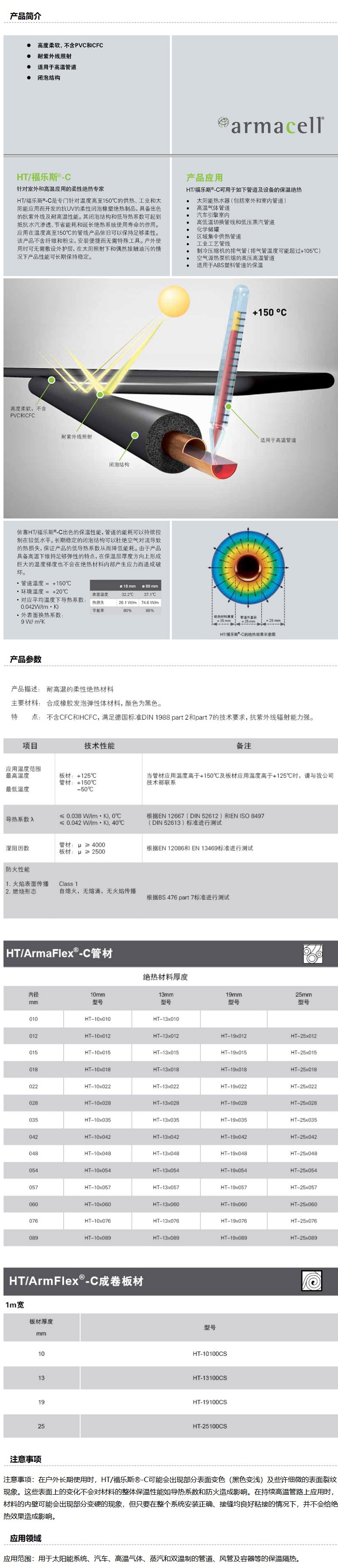 商品名称:福乐斯 HT/ArmaFlex®-C管材 HT-25*076,壁厚*内径25mm*76mm,12米/箱