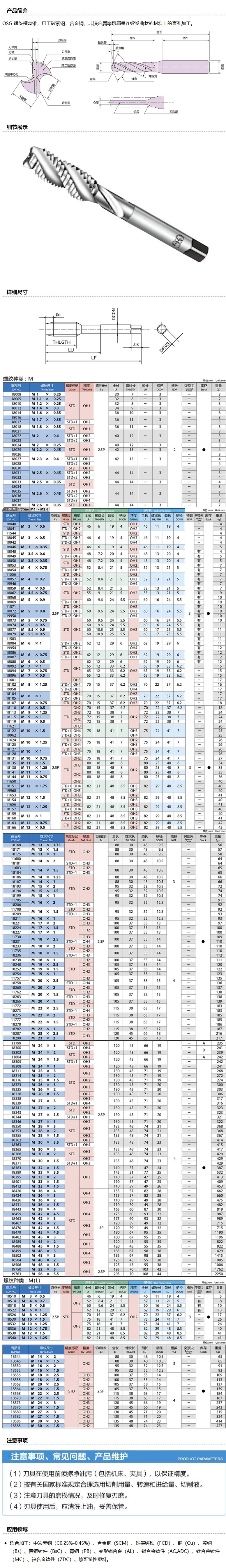 商品名称:OSG螺旋丝锥,EX-SFT M4×0.75,精度OH 3