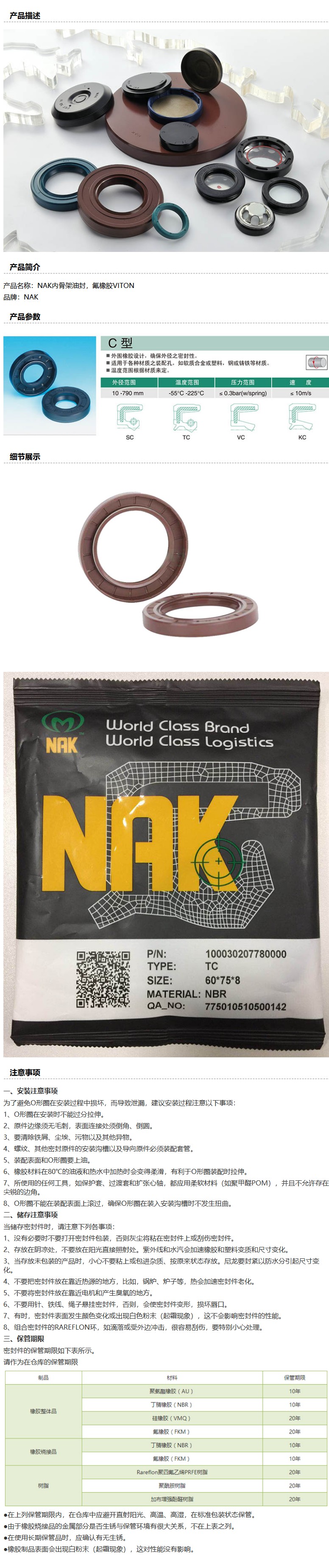 商品名称:NAK/茂顺 耐高温氟橡胶双唇内骨架油封,TC 25*50*10 FKM,1个/包