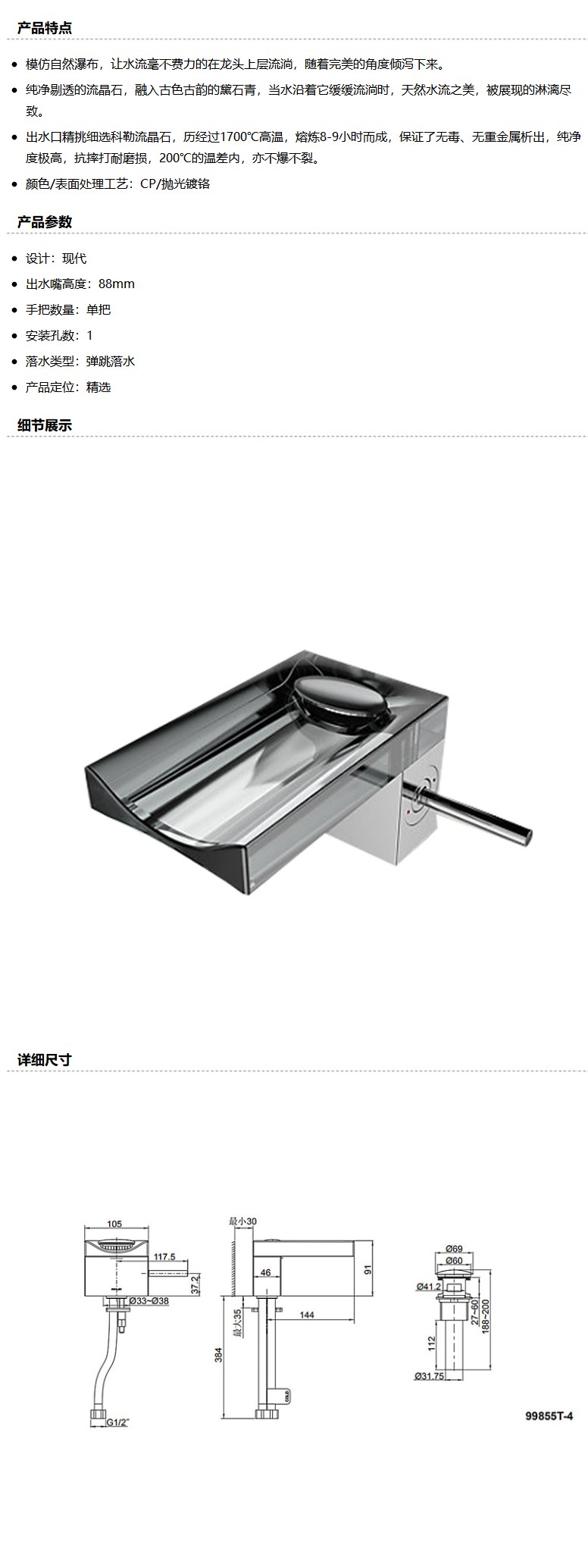 商品名称:科勒 曼达单把脸盆龙头(黛石青),K-99855T-4-CP