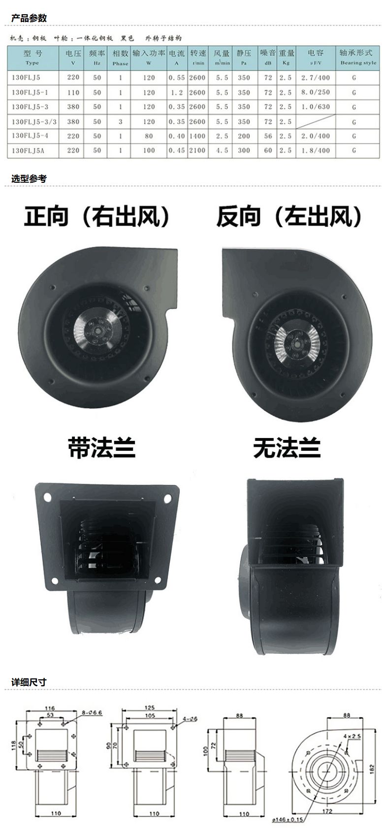 商品名称:威尔克 FLJ系列小型工频离心风机,130FLJ5-3/3,380V,无法兰/左出风