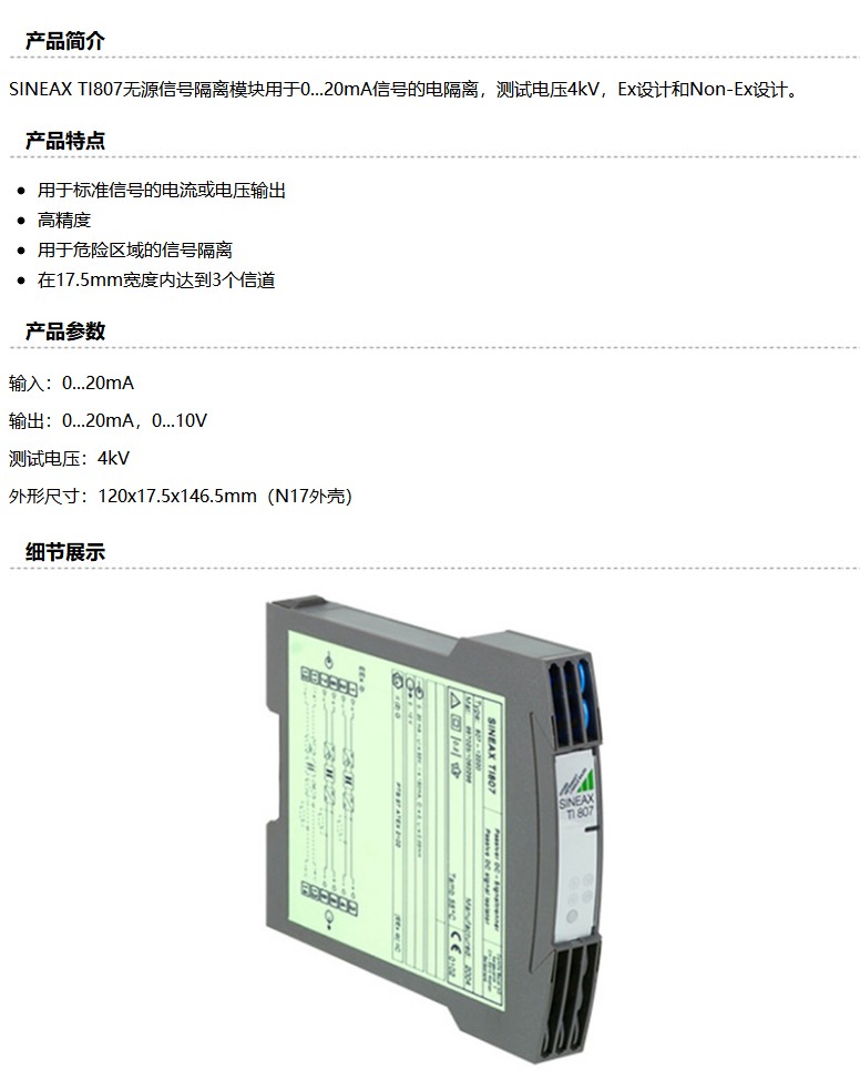 商品名称:德国高美测仪/GMC-I 无源信号隔离模块,SINEAX TI807