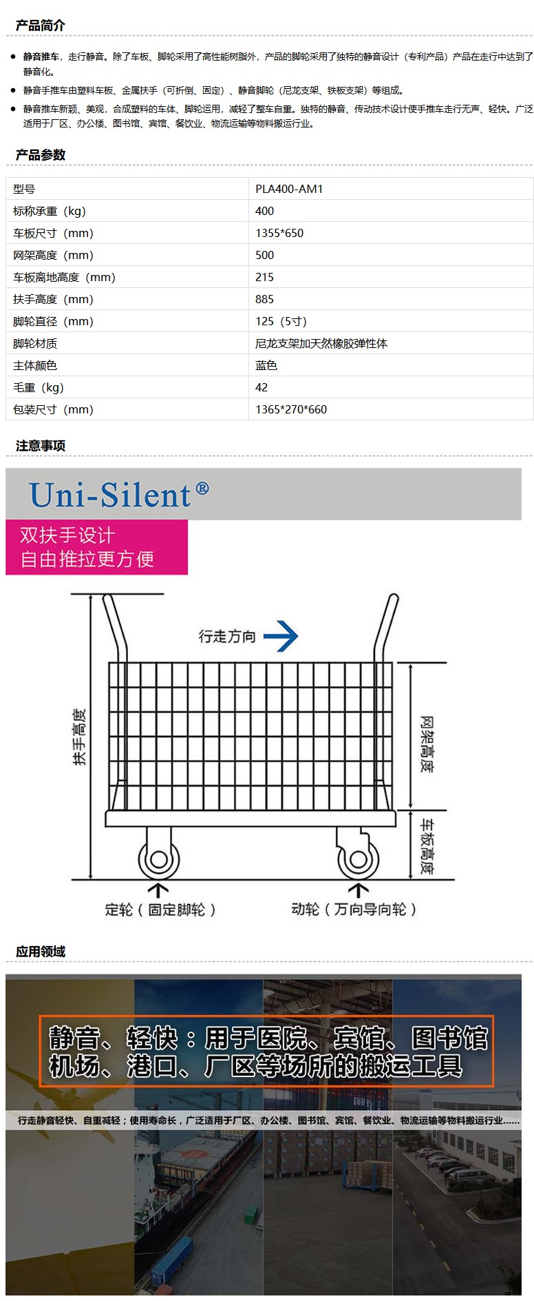 商品名称:连和 超静音单层双扶手网架车,静音轮 400KG,PLA400-AM1