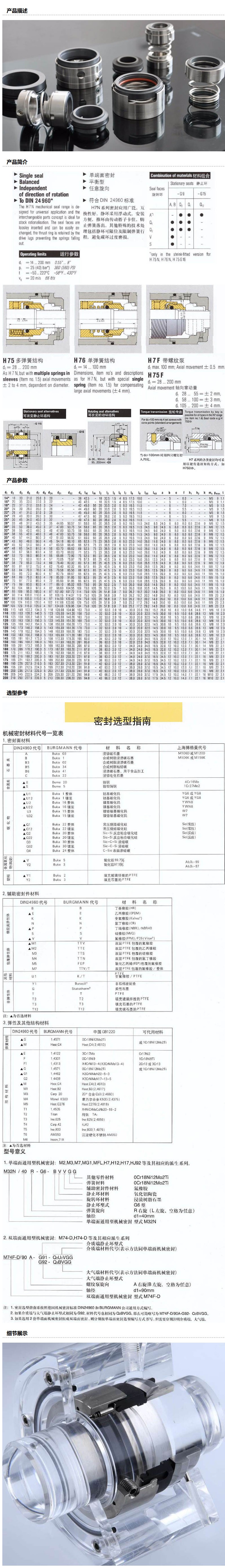 商品名称:嘉善博密机械密封,H75/50-G9,材质Q2BM5GG,碳化硅对石墨,FEP包覆氟橡胶+316弹簧