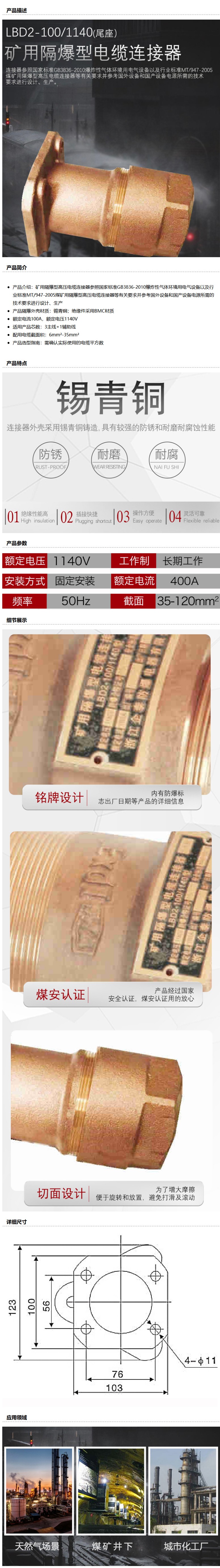 商品名称:企泰 矿用隔爆型电缆连接器连接尾座,LBD2-100/1140,煤安证号MAF160116