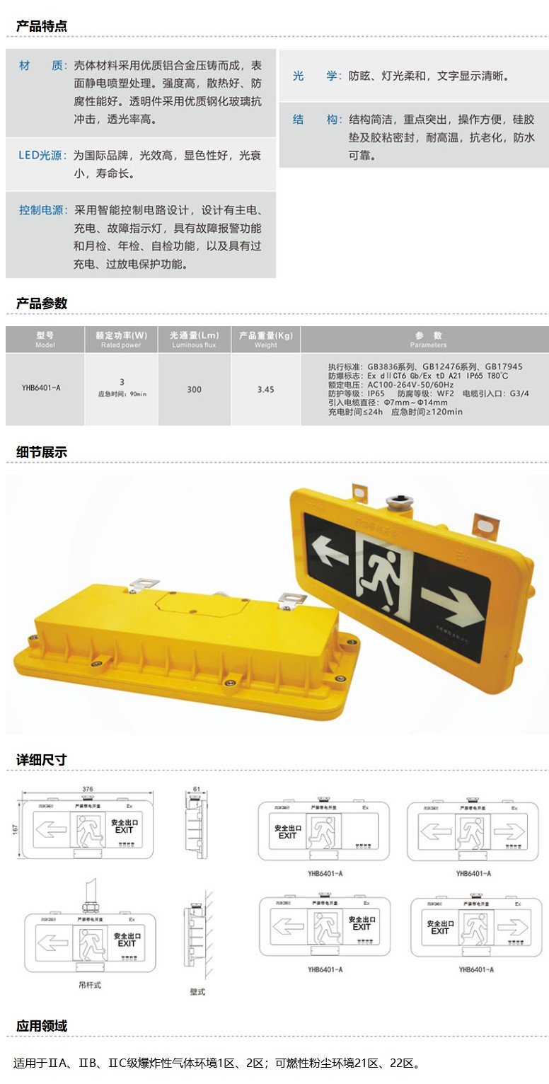 商品名称:耀森 防爆应急标志灯具,3W,白光,YHB6401-A,应急时间90min,左向箭头,壁式,单位:个