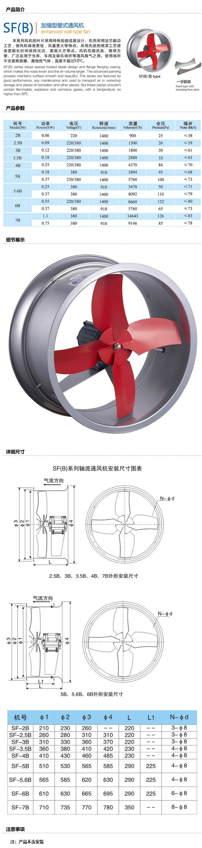 商品名称:九洲普惠 SF(B)加强型壁式通风机(带前后网),SF-3.5B,380V,0.18KW,1400rpm。含木架包装