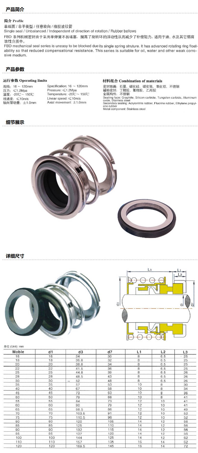 商品名称:嘉善博密机械密封,FBD-30,材质Q2Q2VGG,碳化硅对碳化硅,氟橡胶+316弹簧