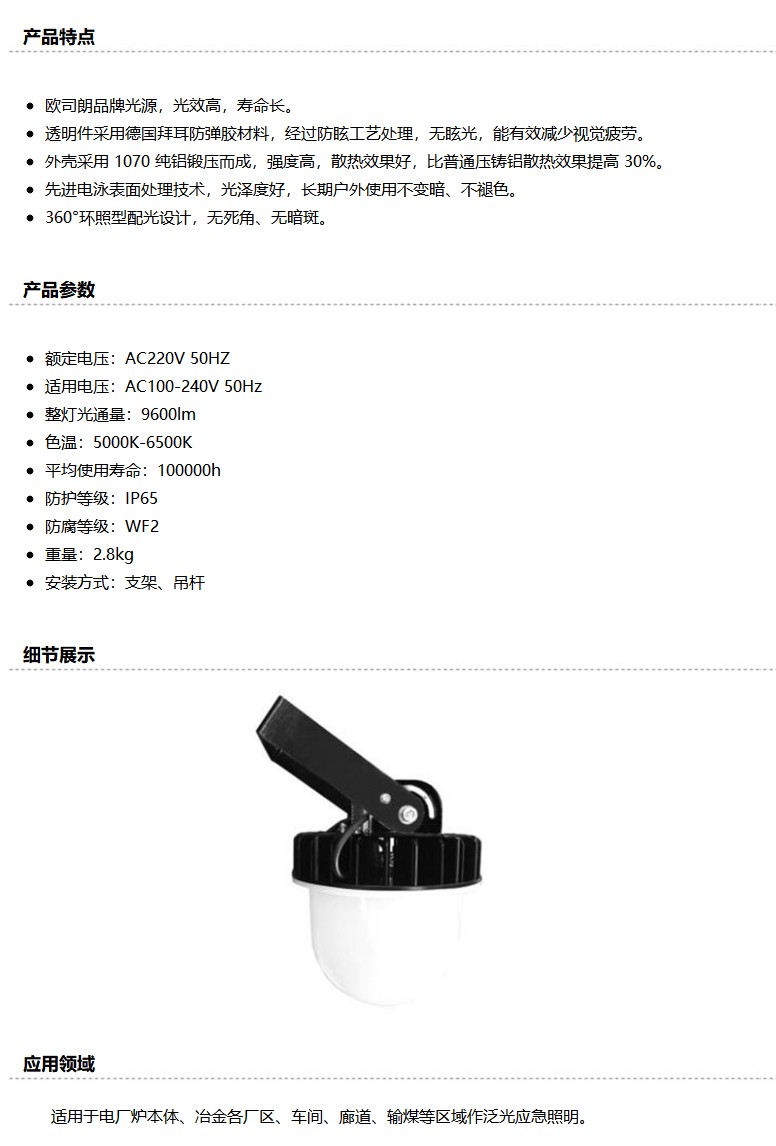 商品名称:中跃 LED平台灯,ZY9145-80W,支架式安装,单位:个