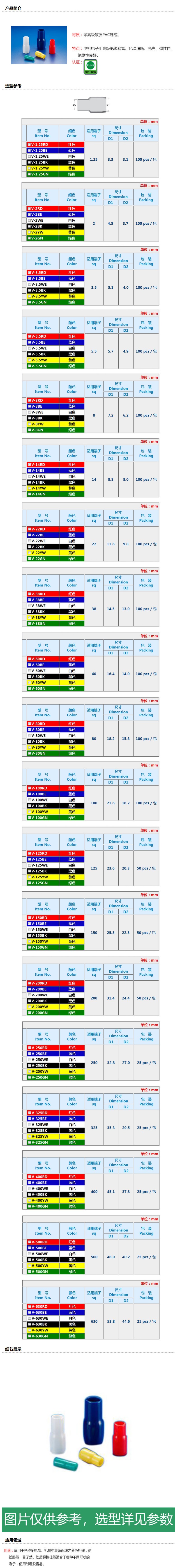商品名称:凯士士KSS 绝缘套管,V-200YW 适用200mm2端子 黄,,50个/包