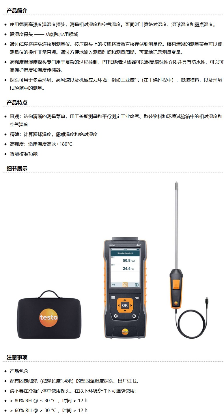 商品名称:德图TESTO 多功能测量仪,testo 440,高温温湿度套装,订货号:510595 4407
