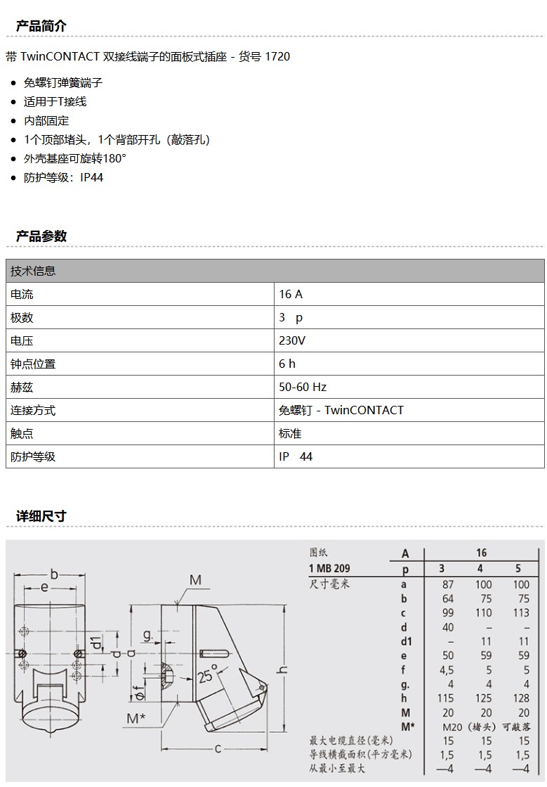 商品名称:曼奈柯斯MENNEKES 工业插座,1720