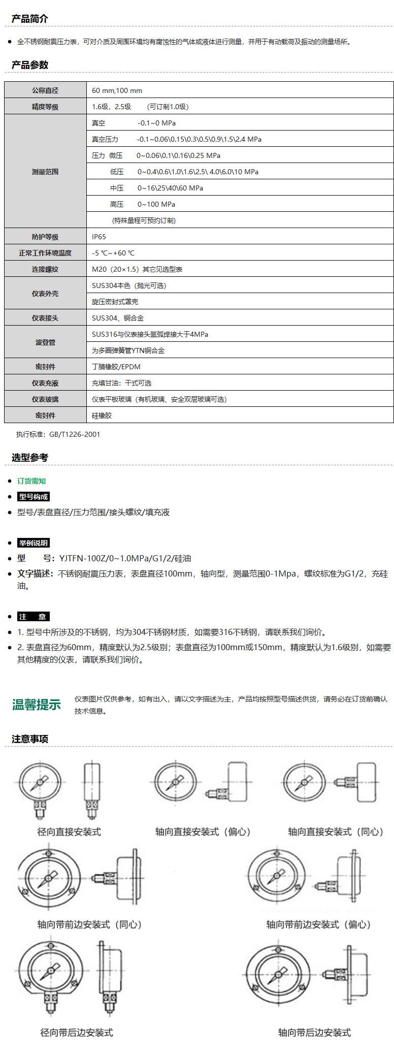 商品名称:万达/WANDA 耐震压力表YJTFN,全不锈钢,轴向不带边Φ150,精度1.6级,0~0.4MPa,NPT1/2,充硅油