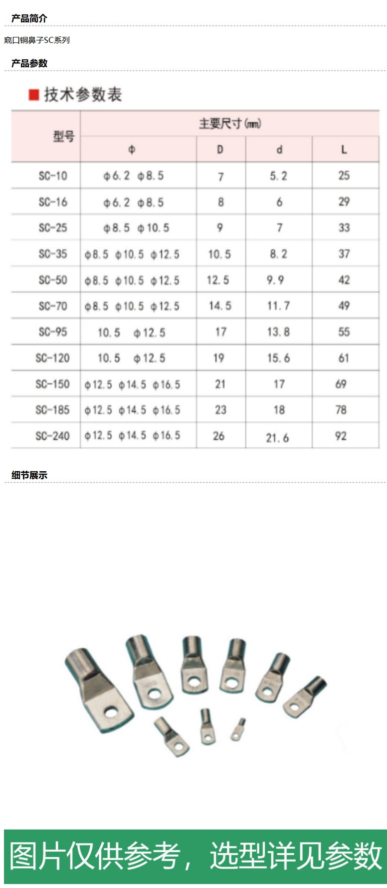 商品名称:固力发 SC系列窥口铜鼻子,SC150-16,20只/包