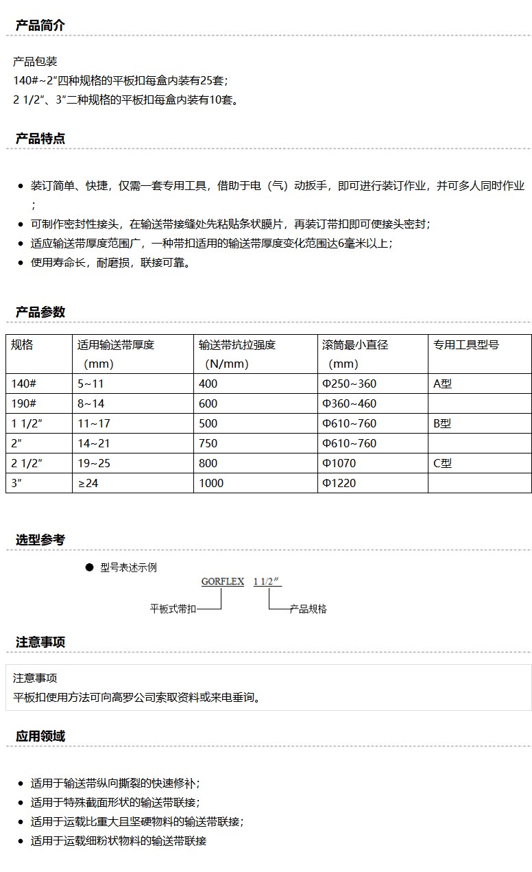 商品名称:高罗GORO 平板式输送带扣,2",25副/盒