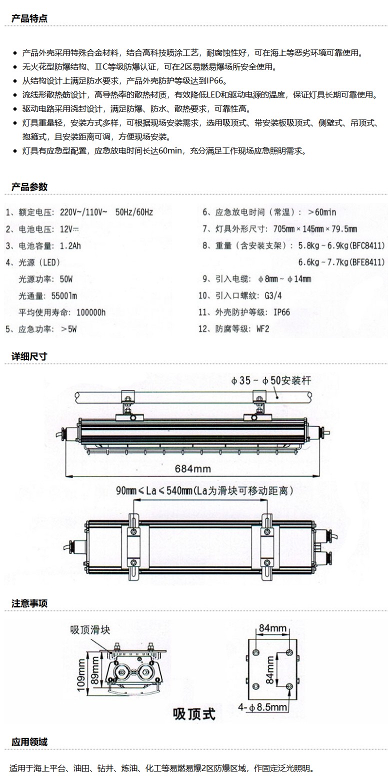 商品名称:深圳海洋王 LED防爆泛光灯,50W吸顶式,BFC8411,单位:个