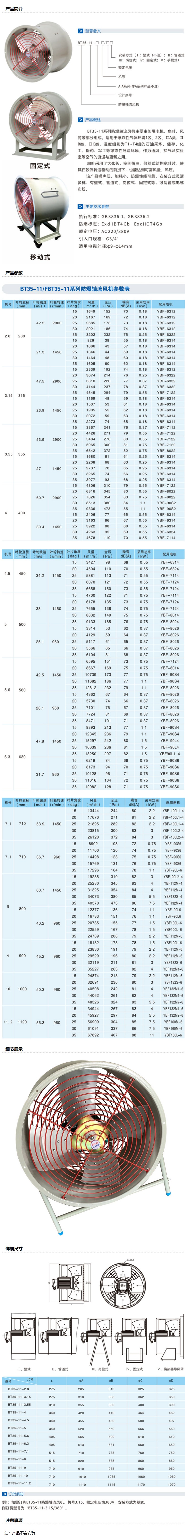 商品名称:轩丰 防爆轴流风机,BT35-11-3.15,380V,2900rpm,岗位式,叶片25°,防爆等级ExdIIBT4