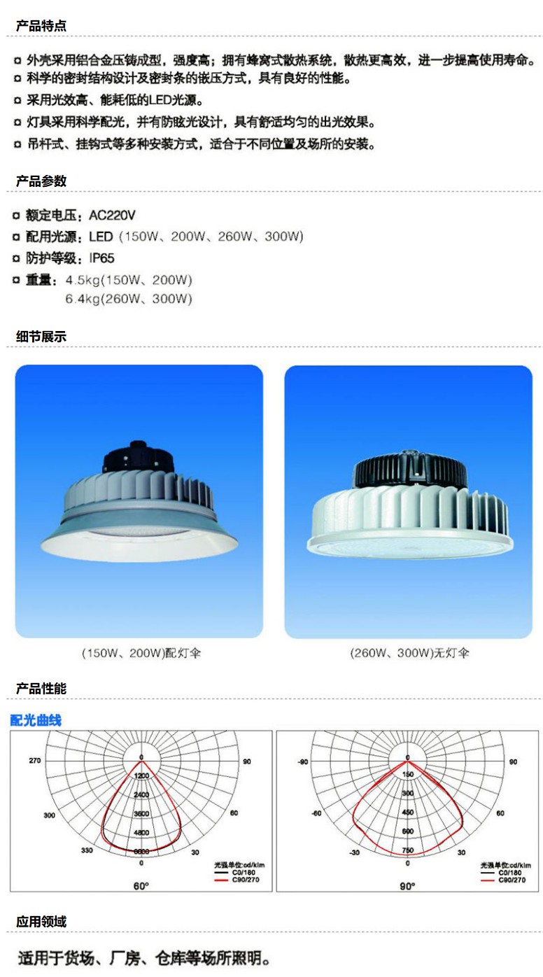 商品名称:华荣 高顶灯,150W,90°配光,RLEHB0012-XL150 III,配灯伞,吊杆安装,无吊杆,单位:个