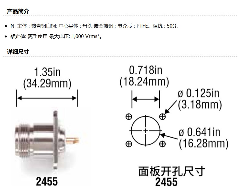商品名称:Pomona N型面板安装插座,2455