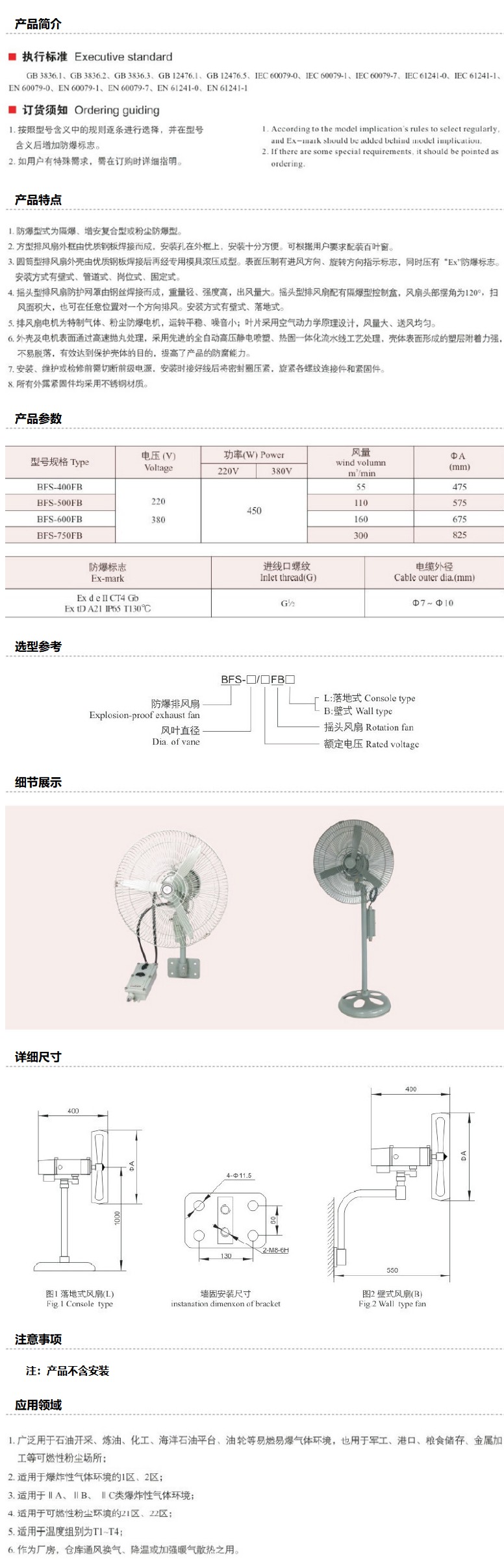 商品名称:飞策 防爆排风扇(摇头式),落地式BFS-750FBL,380V,防爆等级Exd IIBT4