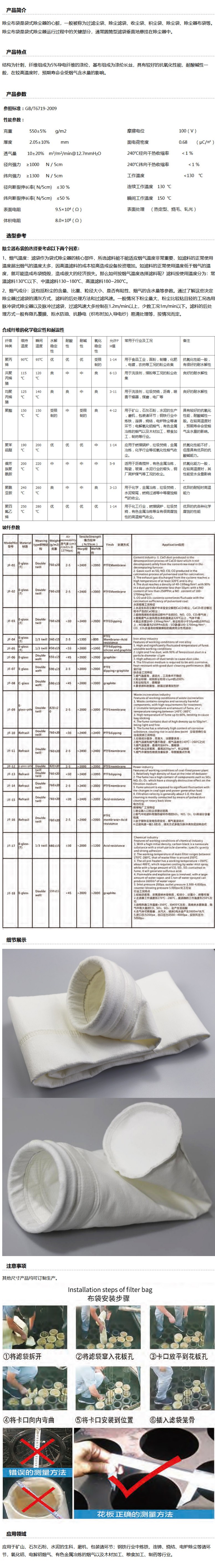 商品名称:捷丰 除尘过滤袋(涤纶防静电针刺毡),JF-PE-094,550g/m2,适用花板口径×滤袋长度φ132mm×3m