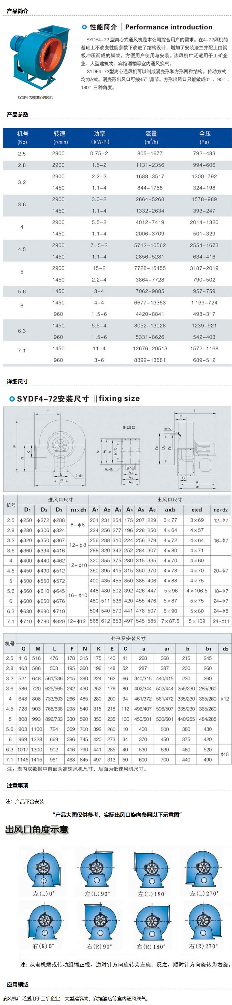 商品名称:应达 SYDF4-72型离心式通风机,SYDF4-72-5.6A,3kw-4P三相,右旋180°。含木架包装