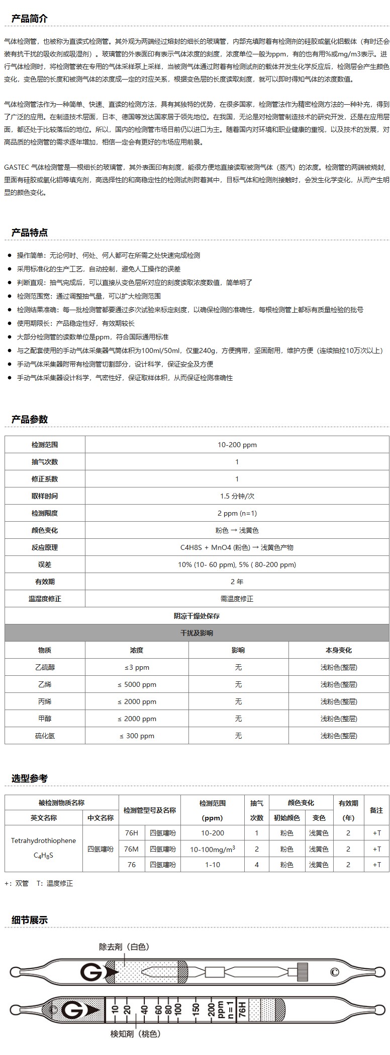商品名称:日本科思特/Gastec 四氢噻吩检测管,76H,10支/盒 1盒起订