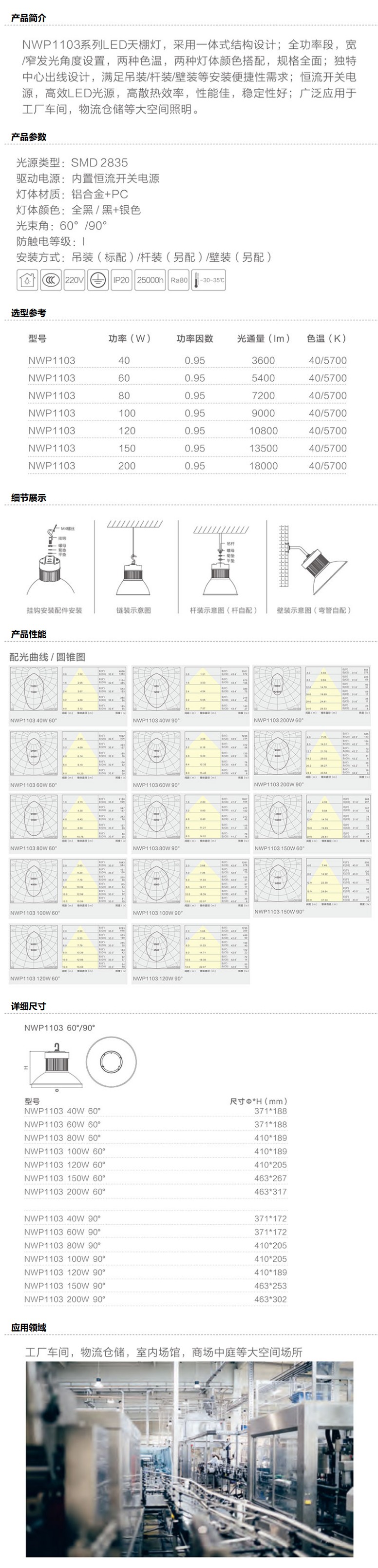 商品名称:雷士 LED天棚灯,200W,白光,NWP1103G,60°配光,砂银灯罩,吊杆安装,不含吊杆,单位:个