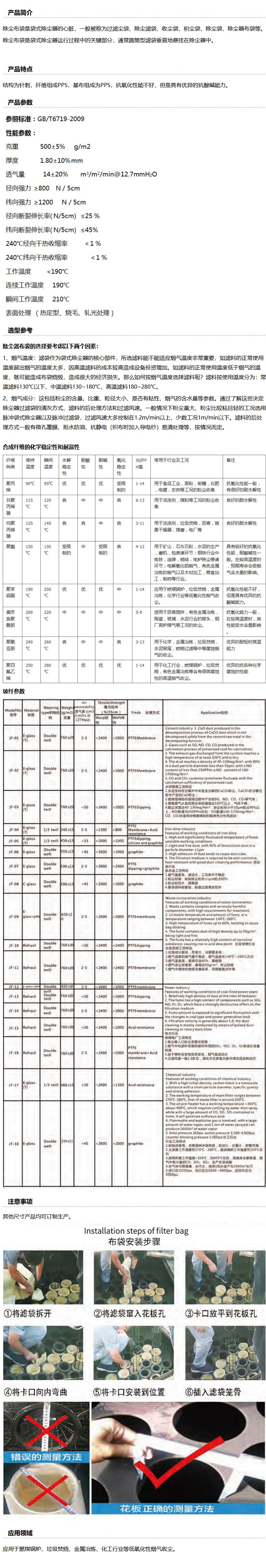 商品名称:捷丰 除尘过滤袋(pps针刺毡),JF-pps-819,500g/m2,适用花板口径×滤袋长度φ131mm×2m