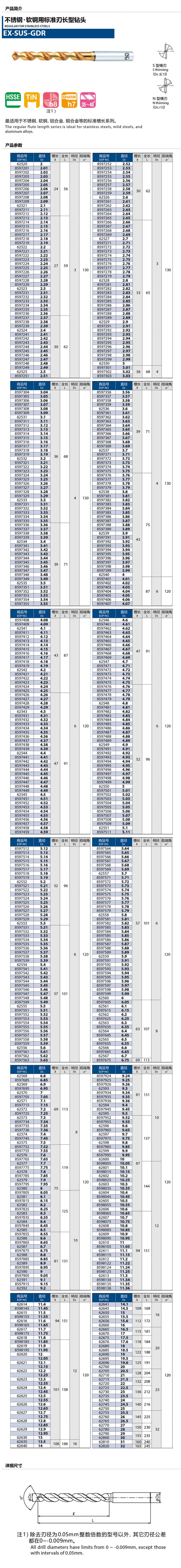 商品名称:OSG 涂层高钴麻花钻,标准刃长,EX-SUS-GDR 5.9,适合不锈钢、软钢加工