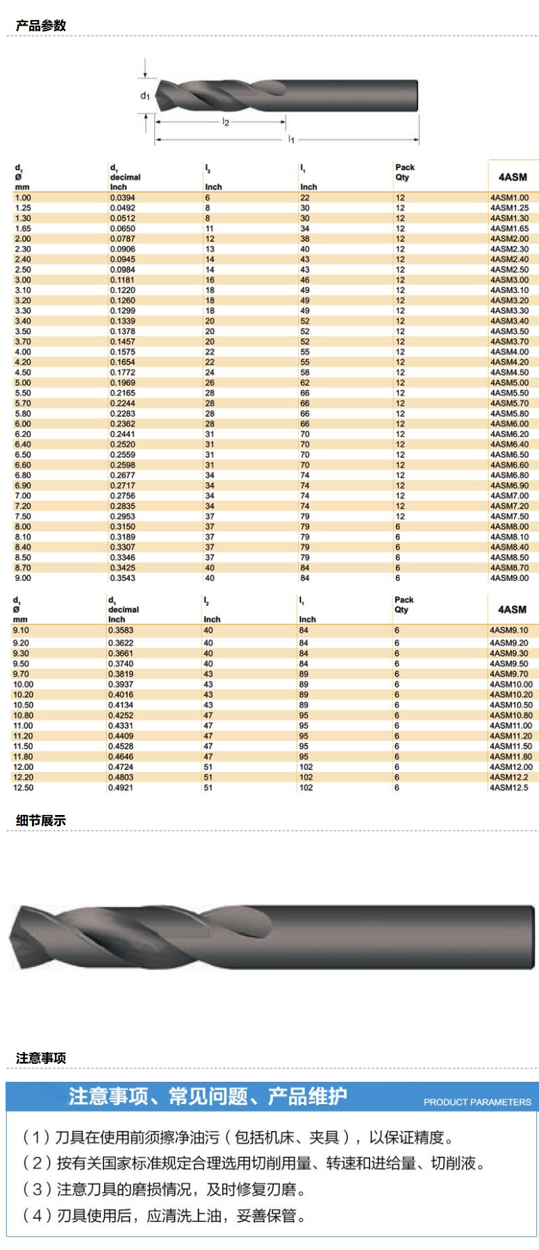 商品名称:多马DORMER PTD航空钻头,4ASM系列 9.7,6支/包