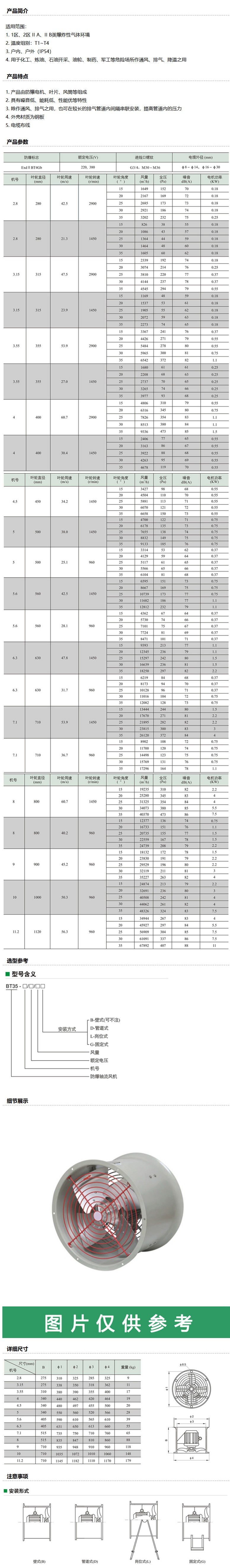 商品名称:合隆 防爆轴流吸风机壁式,BT35-7.1/4/21895(380V)吸风,防爆等级Exd IIBT4