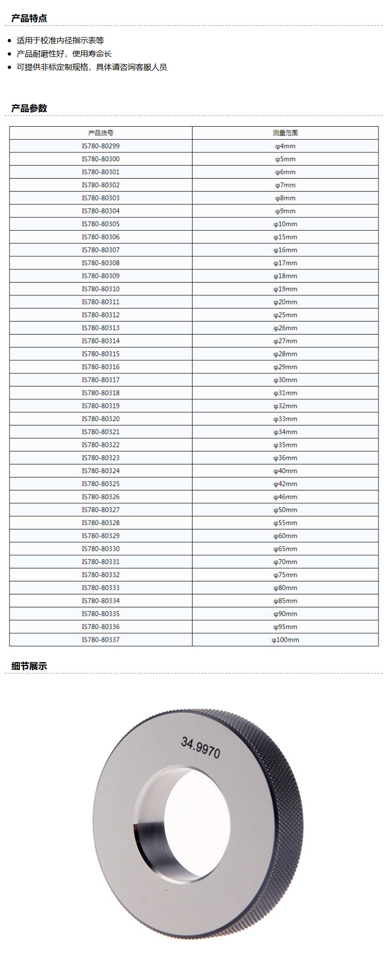 商品名称:INVOUS 校对环规,φ100mm,IS780-80337