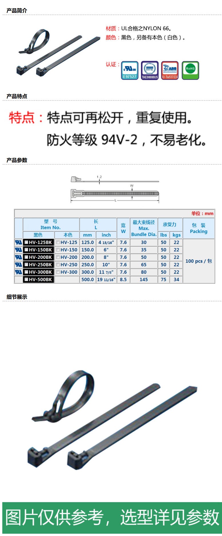 商品名称:凯士士KSS 活用式扎线带,HV-150BK