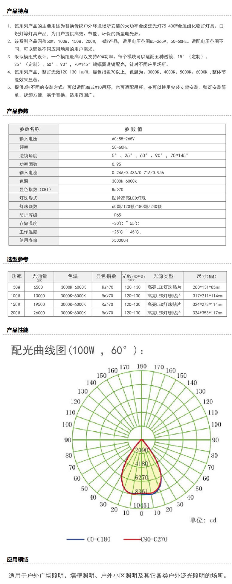 商品名称:科明 M系列模组工矿灯,KMM-MZGKD-100W(防水),60°配光,含U型支架,单位:个