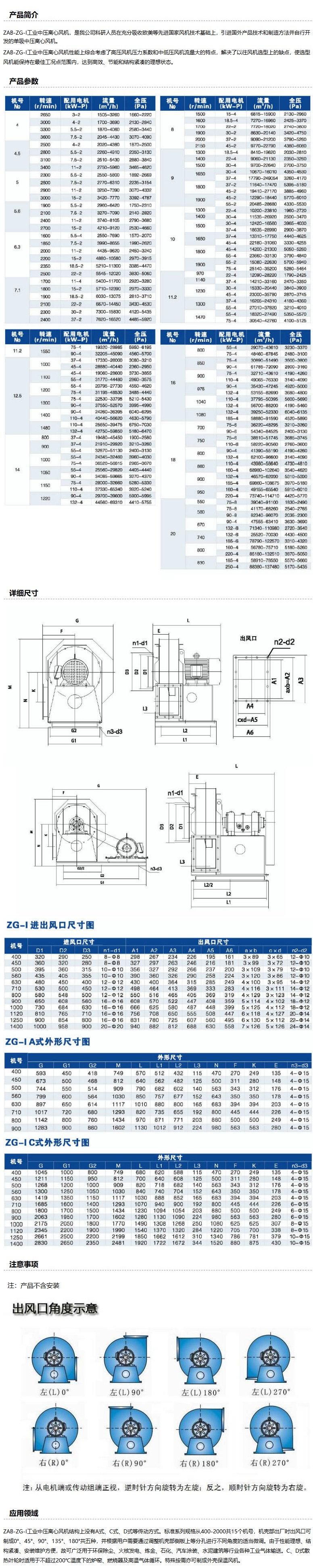 商品名称:应达 工业中压离心风机,SAB-ZG-I-8,2150r/min,45kw-2三,出风口右旋90°