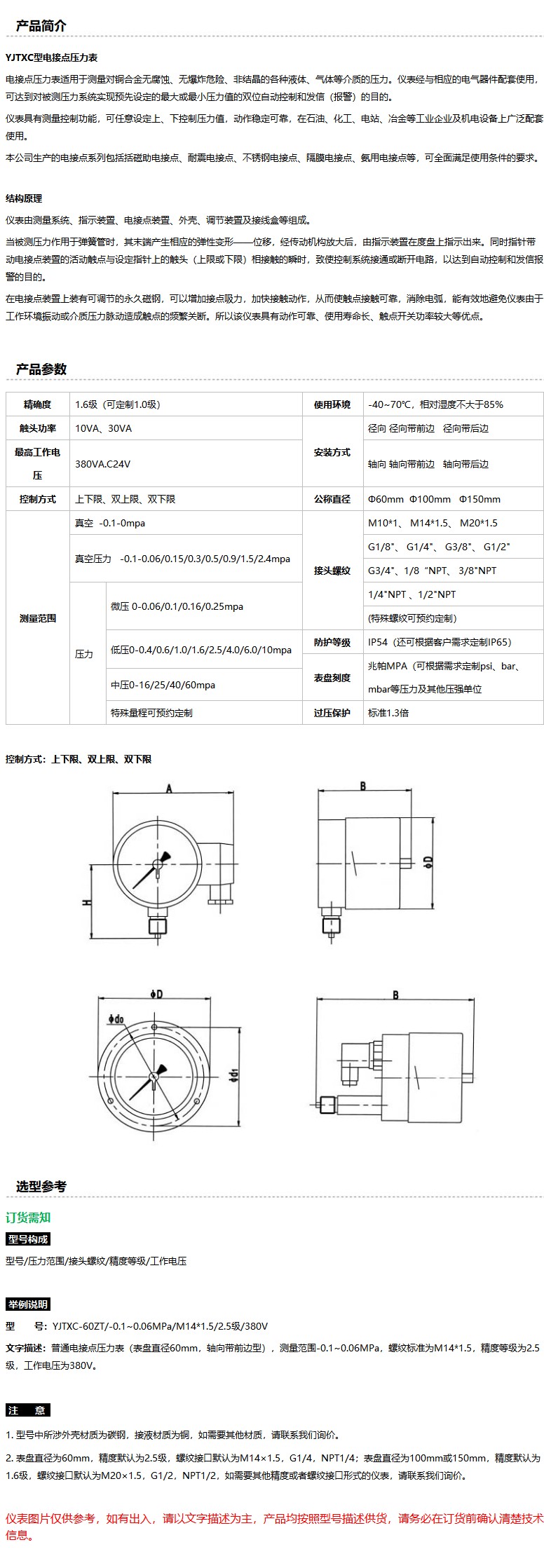 商品名称:万达/WANDA 电接点压力表YJTXC-60ZT,碳钢+铜,轴向带前边,Φ60,0~0.6MPa,G1/4,2.5级,24V