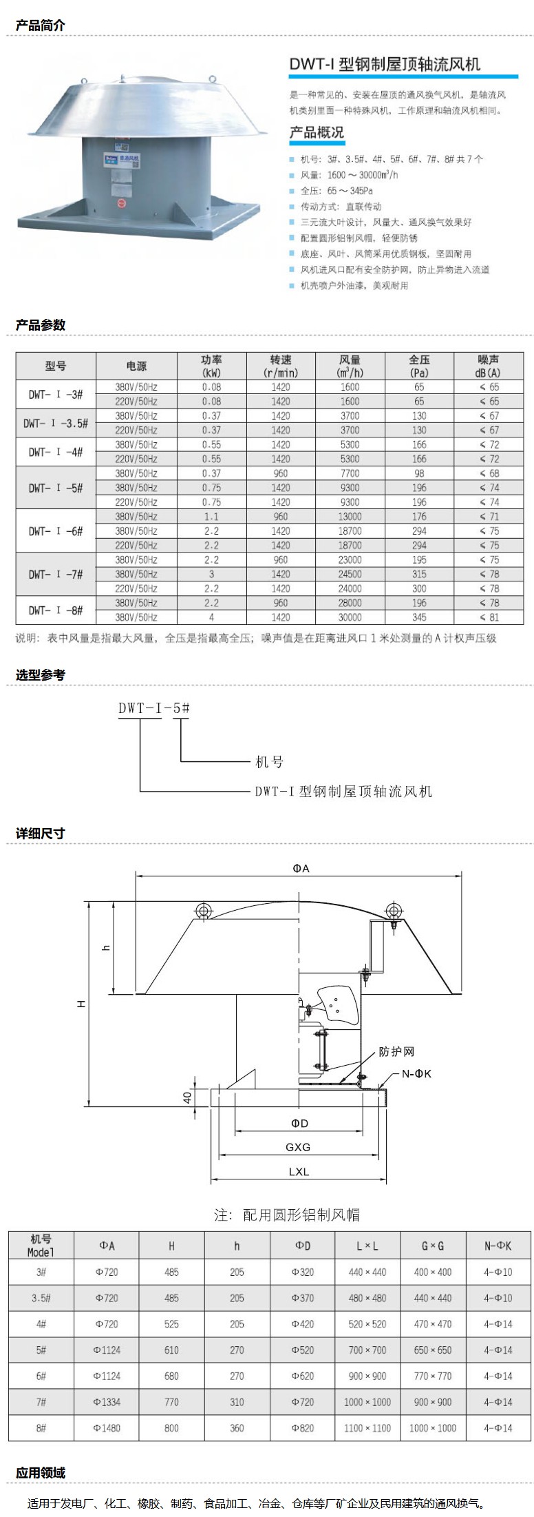 商品名称:德通 DWT-I型钢制屋顶轴流风机,DWT-I-7#/3KW,380V