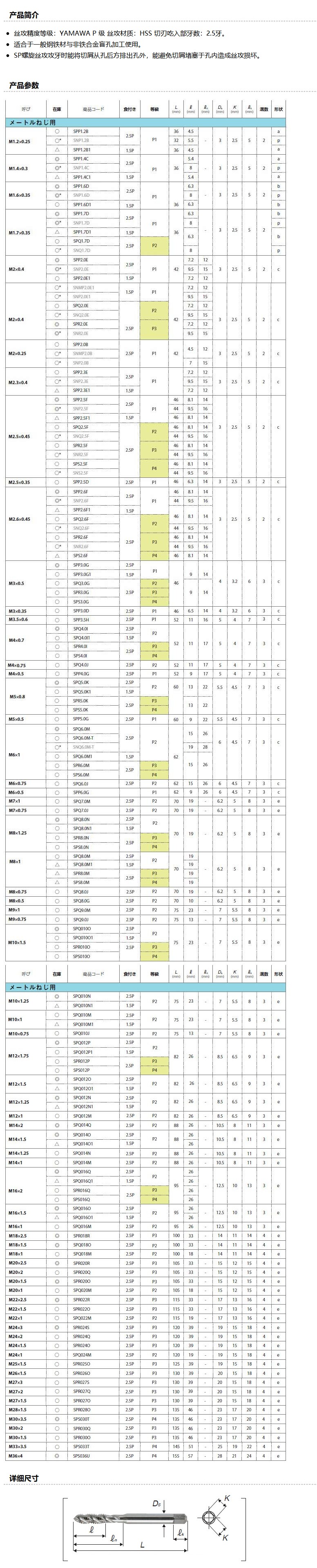 商品名称:YAMAWA 螺旋槽丝锥,+SP M3(M3*0.5) P4,适用加工低碳钢、铜、铝、镁合金等