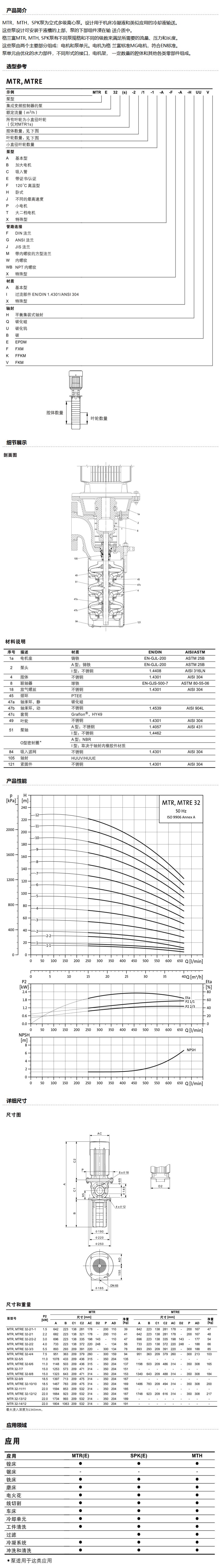 商品名称:格兰富/Grundfos MTR32-3/3A-F-A-HUUV MTR系列浸入式多级离心泵