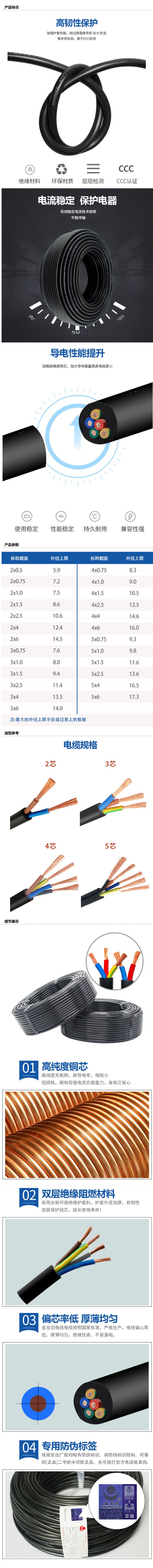 商品名称:金龙羽 多芯软电线,RVV-4*6+1*4 黑色,100米/卷